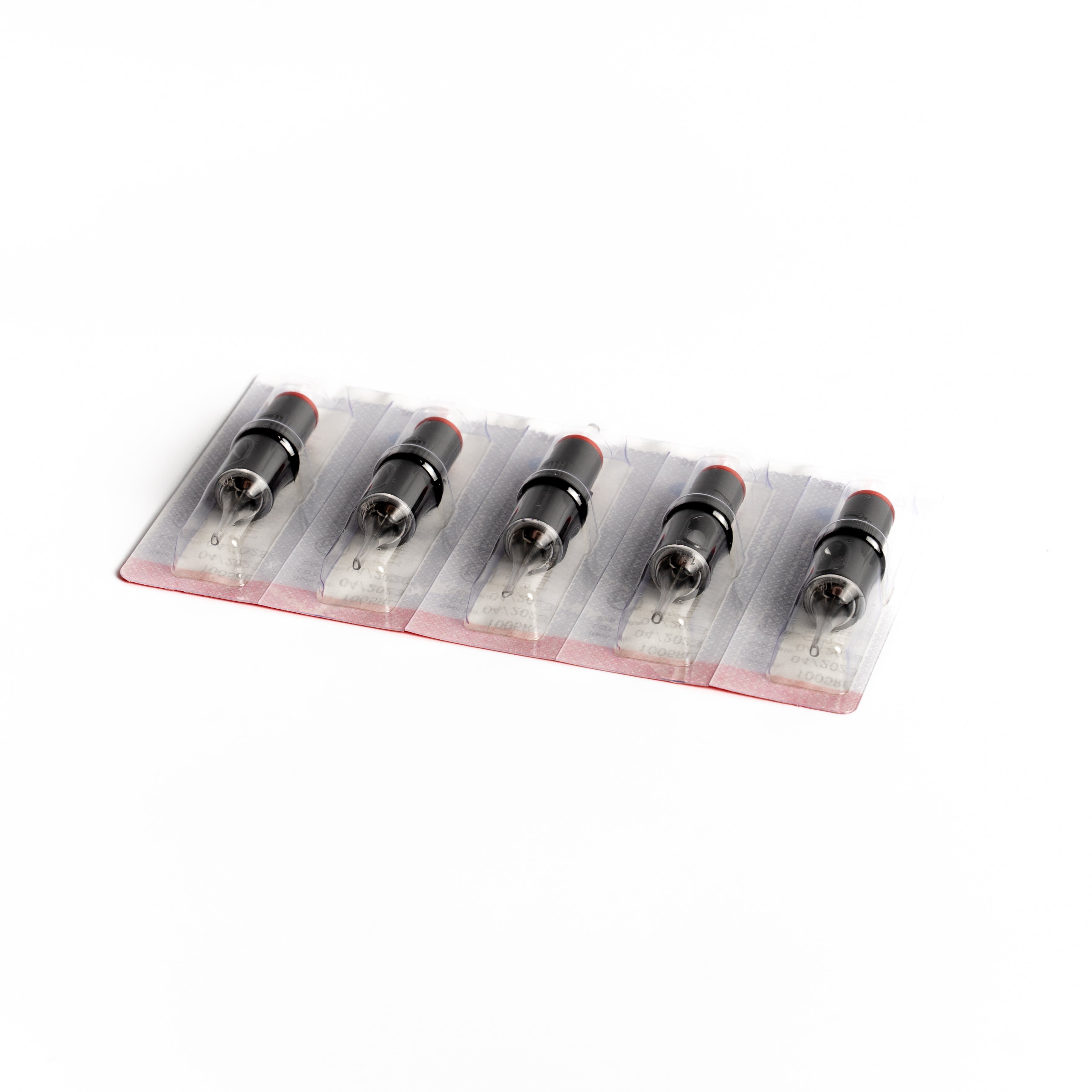 Cartuchos de agujas BEE con membrana interior, un sistema de seguridad que no permite que la tinta pase al interior del grip o de la máquina del tatuaje. Caja de 20 unidades.
