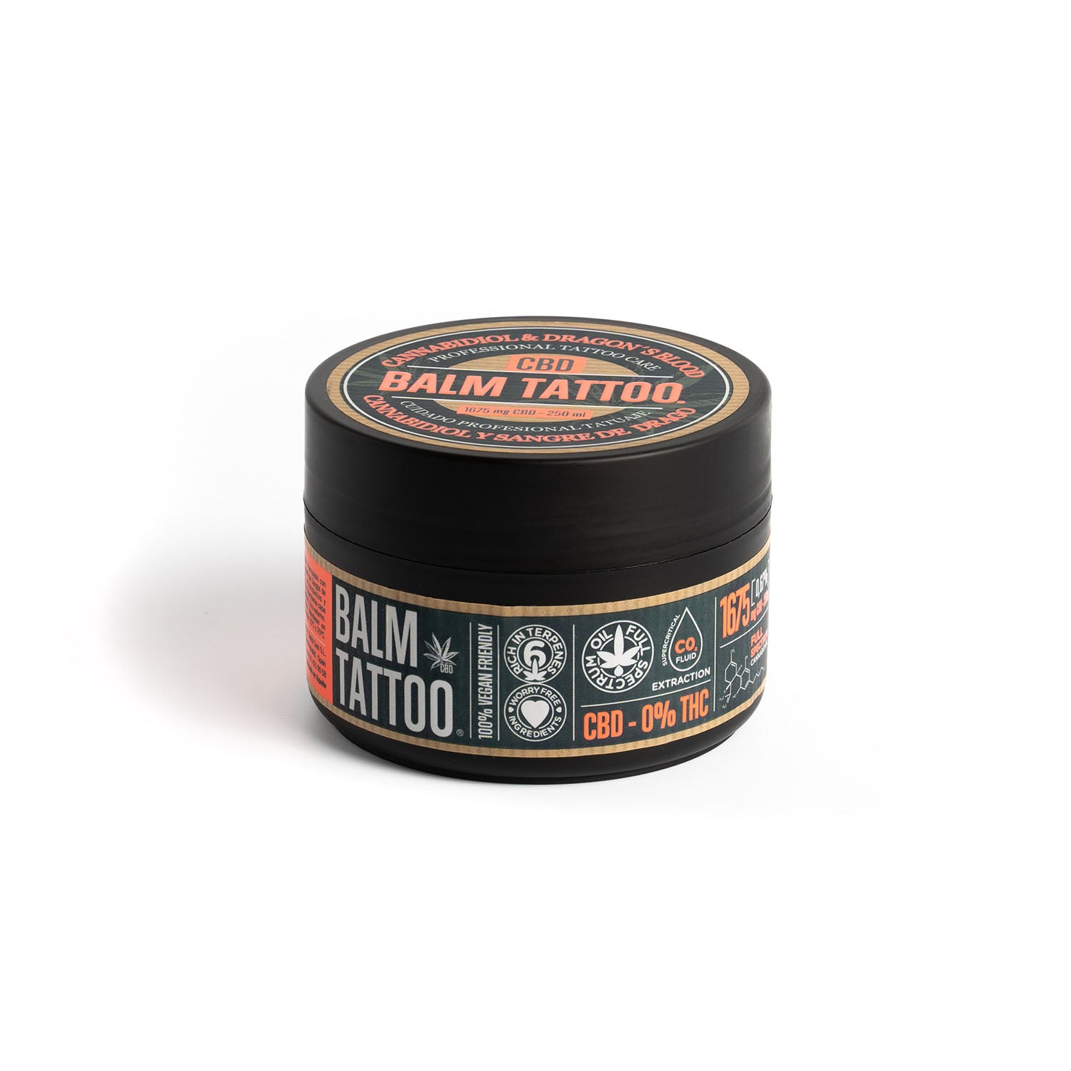 Todos los productos Balm Tattoo co CBD, están formulados con CBD cristal puro 100% y aceite Full Spectrum, con los todos los terpenos de la planta originaria, sin aditivos químicos y con 0% de THC. Nuestro CBD procede de la planta de Cannabis de cultivo orgánico, mediante un proceso de extracción con CO2.