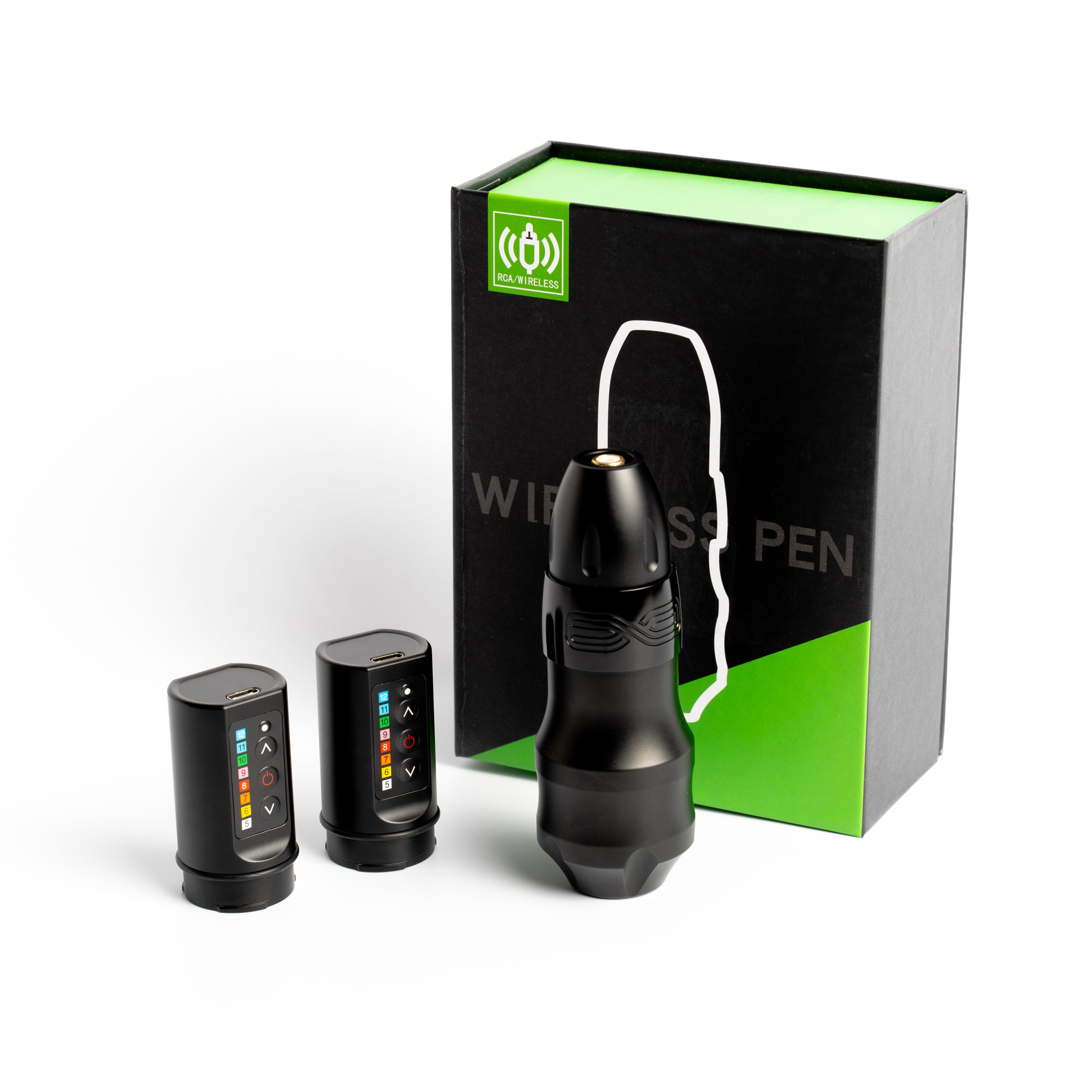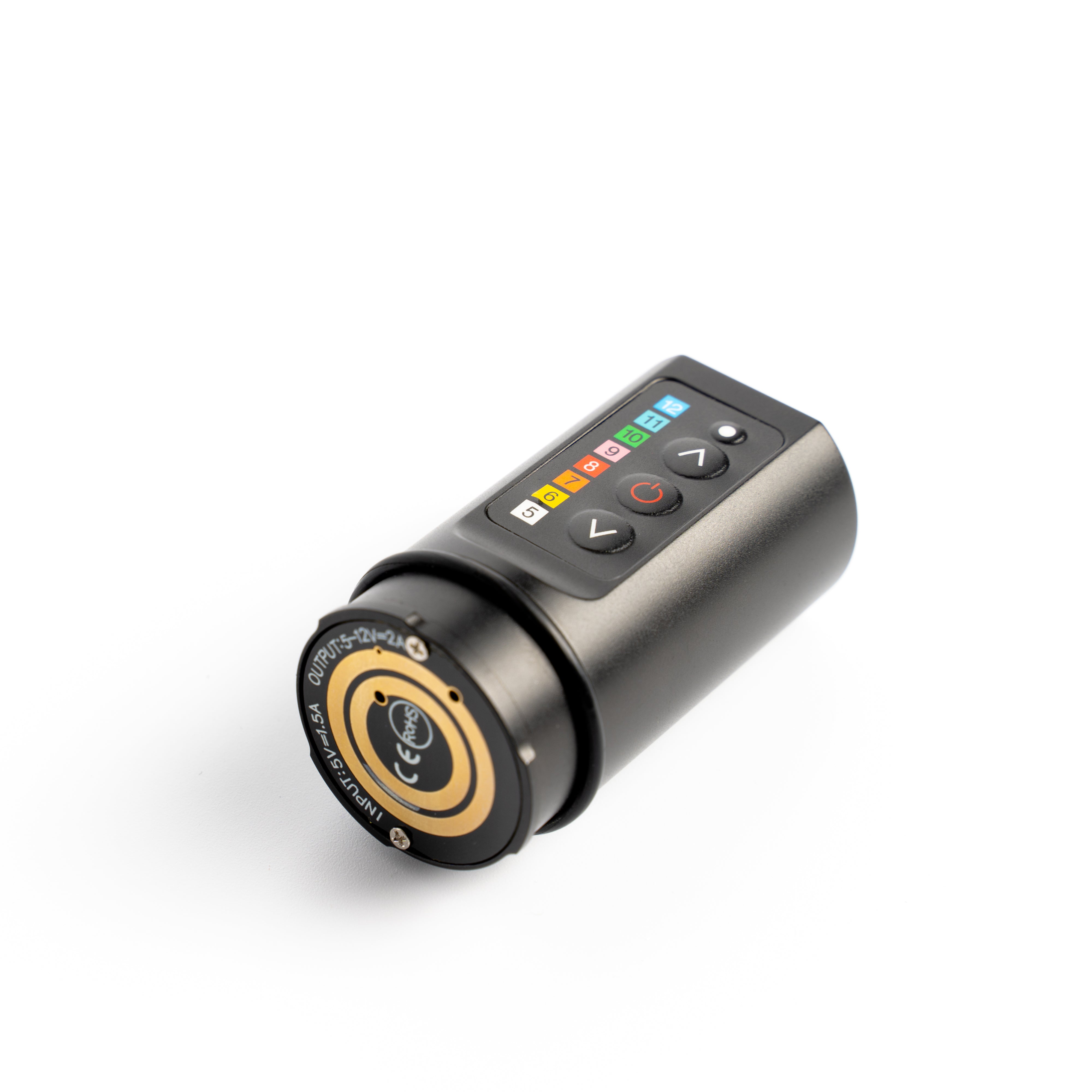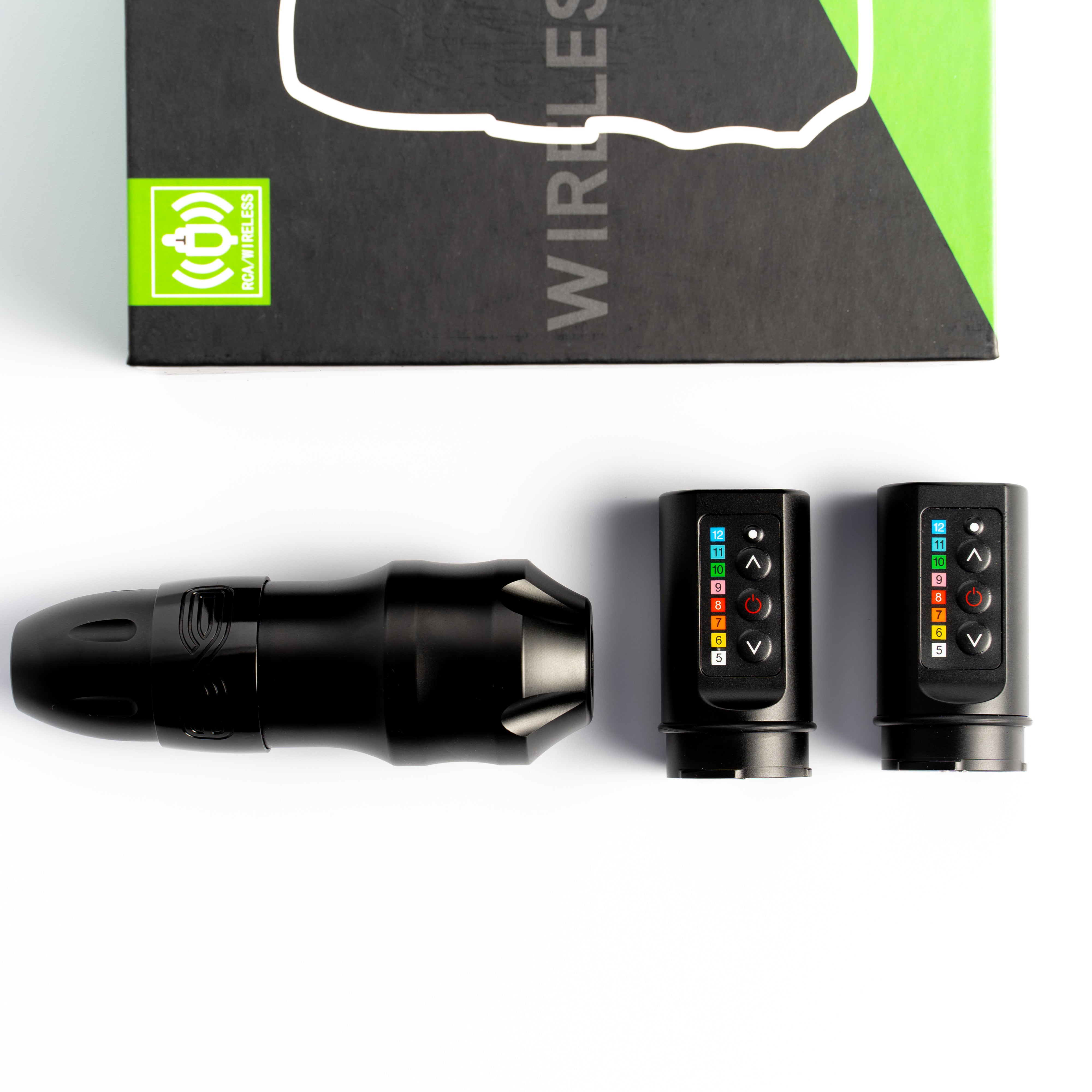 Máquina para tatuar de grandes prestaciones y lista para funcionar con cable RCA o batería inalámbrica.