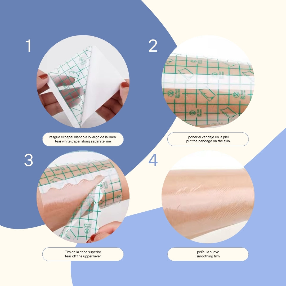 • Transpirable y Flexible: Permite que la piel respire y la humedad escape, evitando la formación de costras y asegurando una curación óptima. Su flexibilidad se adapta a cualquier zona del cuerpo, brindando comodidad y libertad de movimiento.