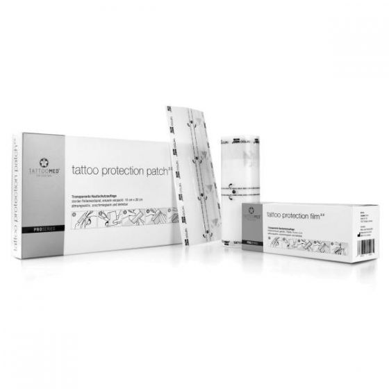 TattooMed Tattoo Protection Film es una película ultrafina, transpirable, duradera e impermeable que se utiliza en tatuajes frescos para ayudar a la cicatrización de la piel. Este film funciona protegiendo tu nueva obra de arte de infecciones debidas a la penetración de cuerpos extraños, y ofrece a la piel la oportunidad de regenerarse en un clima de heridas húmedas.
